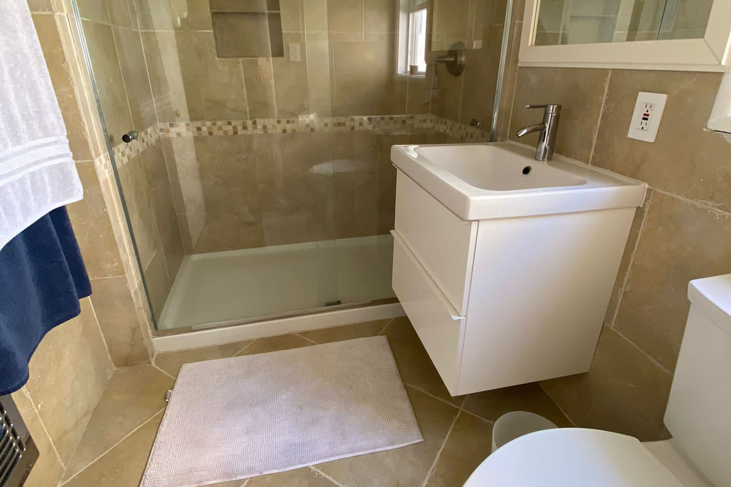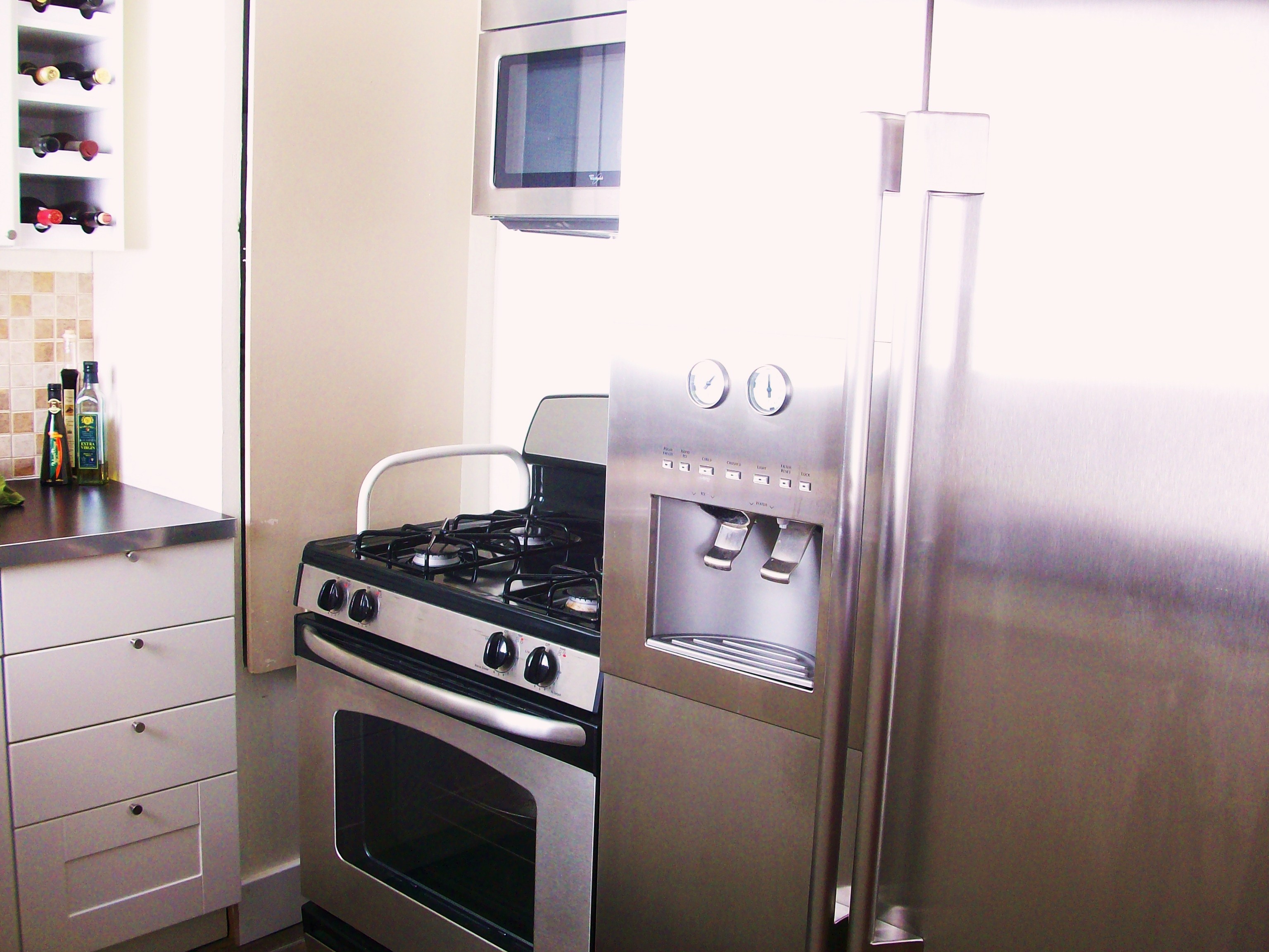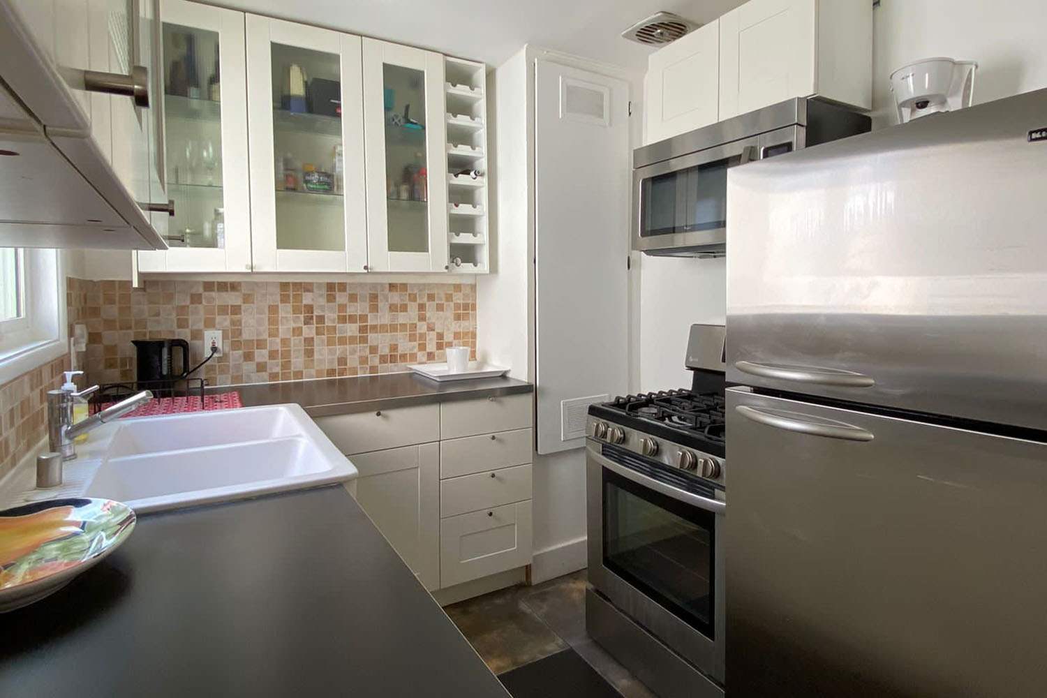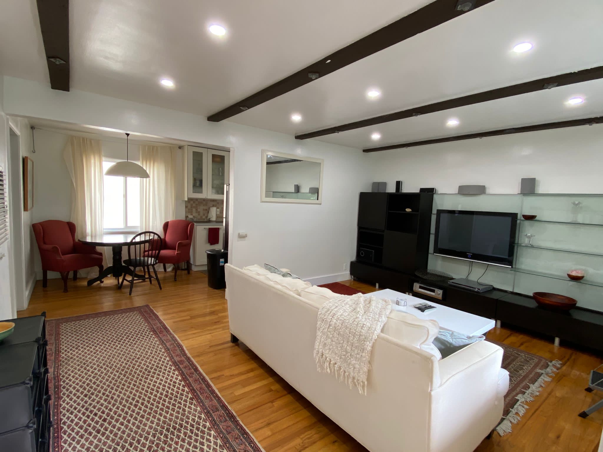 Spacious one bedroom apartment with custom designed kitchen, living room and bathroom. All new stainless steel appliances, including fridge, dishwasher, stove, and cabinets for the traveling Chef. Custom designed bathroom with full size bathtub.